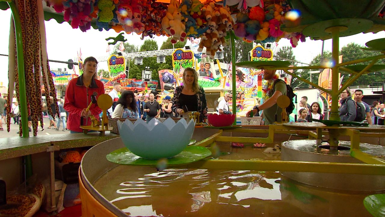 Het spel is simpel. Je legt een rubberen kikker op een plateautje en mept 'm met een hamer zo hard je maar kunt in een draaiend schaaltje. Maar ja, zoals dat gaat met kermisattracties: het ziet er altijd simpeler uit dan het is.