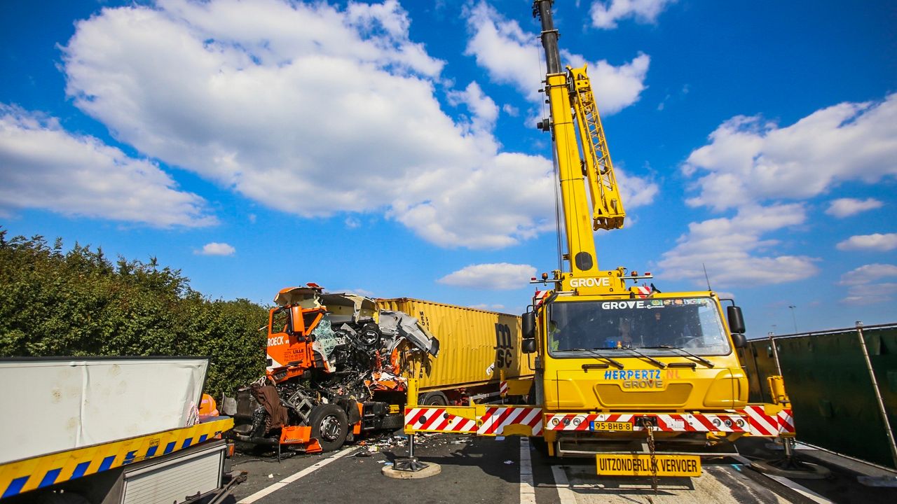 Twee van de drie vrachtwagens die zijn betrokken bij het ongeluk werden al voor de avondspits weggesleept. Het afvoeren van de derde vrachtwagen met gevaarlijke stoffen nam nog enkele uren extra in beslag.