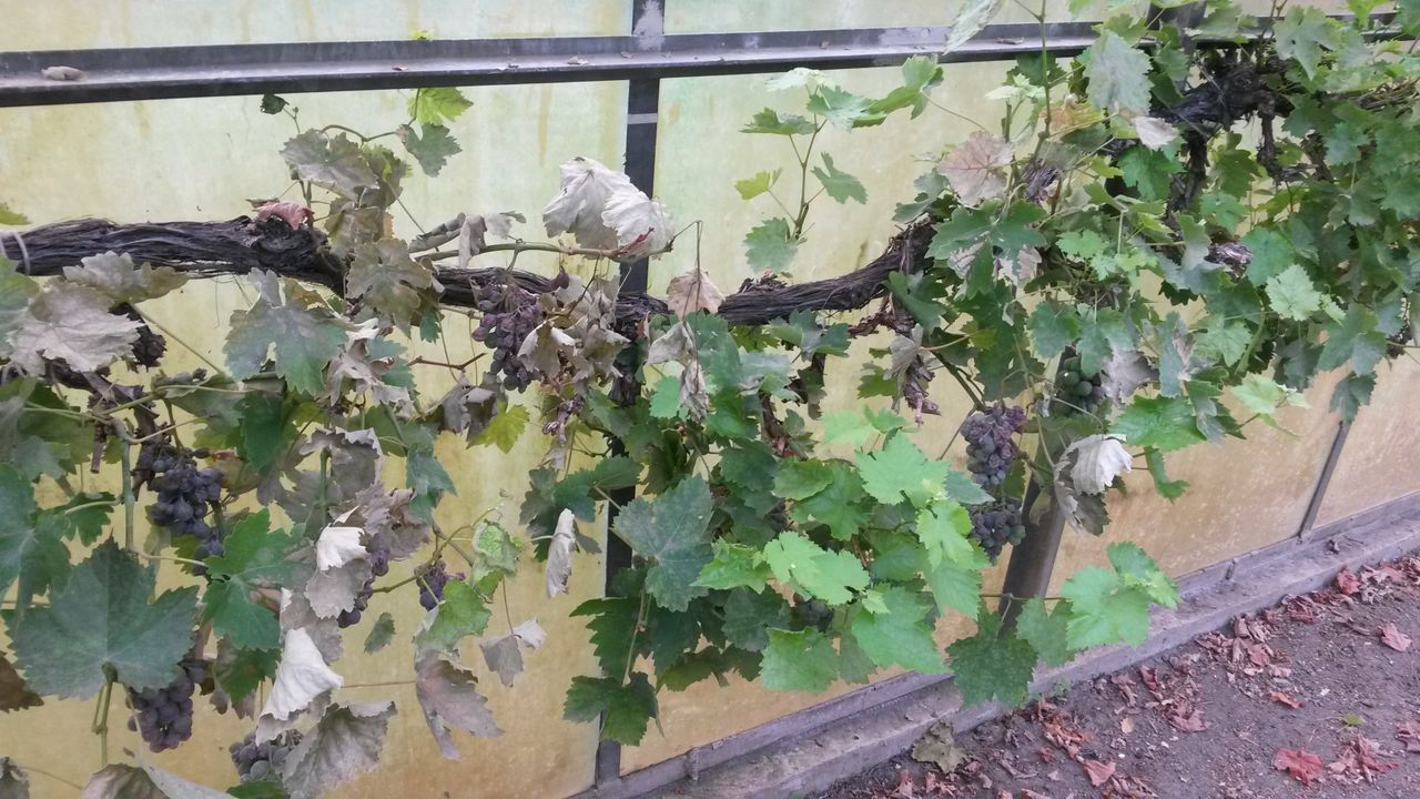 Op de foto van Carla van Bergen zie je nog frisse bladeren van een druivenrank, maar ook al verdorde bladeren. Tevens zijn de druiventrosjes aan het verdrogen. Carla wil graag weten wat hier aan de hand is. Volgens mij heeft dit alles te maken met wat er ook in de natuur gebeurt: dat vanwege de hittegolf de bomen en struiken maatregelen nemen en voortijdig levenskorrels - het groen - terugtrekken uit de bladeren en daardoor ook niet teveel water verdampen. Dit betekent dan wel weer dat er geen suikers aangemaakt worden en dus geen energie. Wellicht zullen als gevolg daarvan ook de druiven geen energie krijgen en verschrompelen.