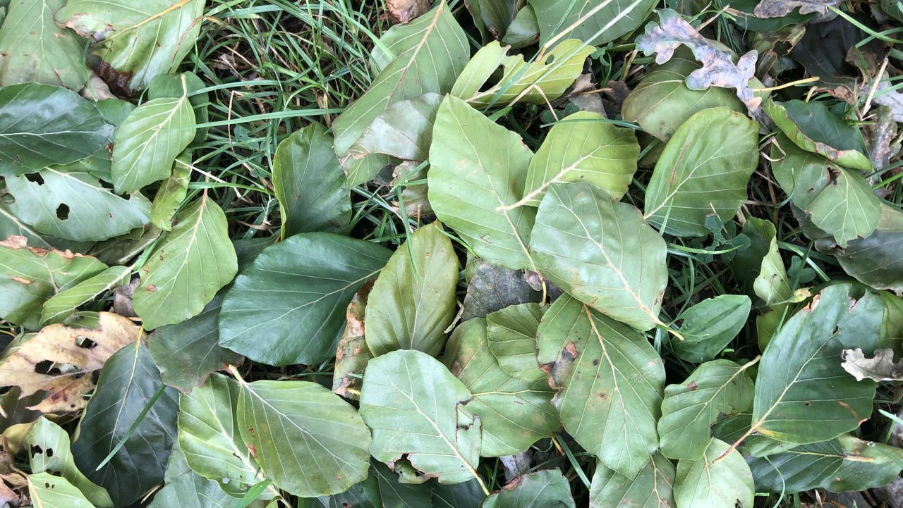 In de natuur gaat het soms nog verder en laten bomen en struiken zelfs hun groene bladeren - zie mijn foto van beukenbladeren - vallen. Dit is rampzalig voor zo’n boom of struik, want dan verliezen ze hun levenskorrels en hebben ze een gezondheidsprobleem. Indien bomen en struiken nu hun bladeren bruin en dor verliezen, zijn het sterke bomen want deze bomen beschermen zich tegen het verliezen aan water en hebben hun levenskorrels teruggetrokken in de stam en takken.