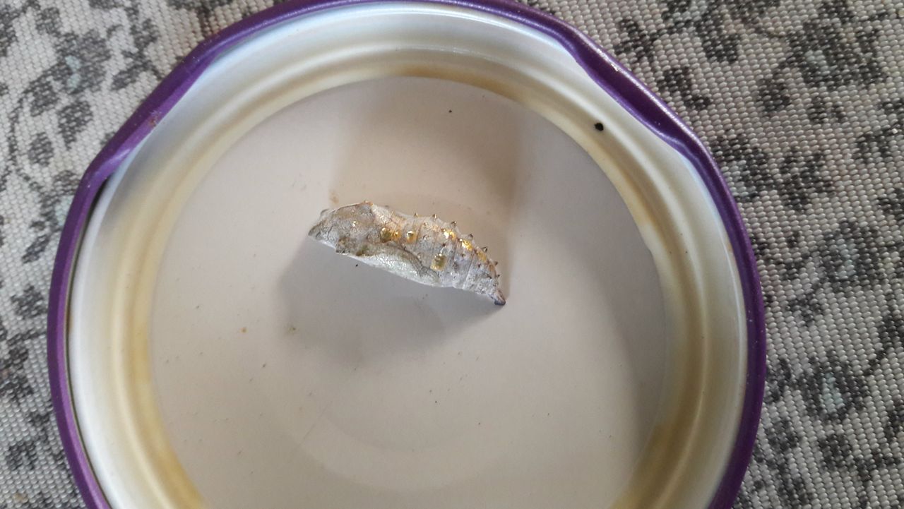 Op de foto die ik kreeg van Mieke Smets zie je op een bord een wittige pop met goudendruppels en wat uitsteeksels. Mieke vraagt zich af wat voor vlinder hier gaat uitkomen. Als ik naar de pop kijk, denk ik dat het een pop is van de kleine vos. Nadat de rupsen van de kleine vos zich volgepropt hebben, gaan ze zich verpoppen. Dit kunnen ze overal doen. Vooral aan plantenstengels, maar ook aan muren. Uit de pop komt dan een mooie vlinder die zich voedt met nectar van verschillende soorten planten. Mannetjes van de kleine vos gaan daarna een territorium bezet houden. Meestal vanaf de middag. Vrouwtjes komen dan naar zo’n territorium en dan vindt de paring plaats. Zij gaan daarna op zoek naar een geschikte plek om hun eitjes af te zetten. Vaak vinden ze zo’n plek bij jonge brandnetels op open, zonnige plaatsen. De rupsen die uit de eitjes komen, eten dan van deze brandnetels. Ik ben wel benieuwd of Mieke e vlinder heeft zien uitkomen en of het een kleine vos is.