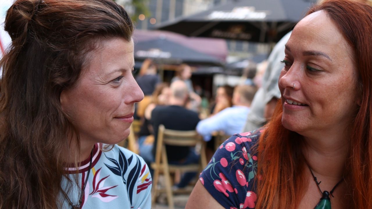 "We zaten de hele tijd zo", zeggen Lisette en Suzan even later op het terras en ze tikken even met hun ellebogen tegen elkaar. Lisette is zorgmanager: Suzan komt ook uit de zorg en is op zoek naar werk. Ze zijn vrolijk en enthousiast en hebben er geen moeite mee hun gedachten - in hoog tempo - te delen. Van elkaar hebben ze aan halve zinnen genoeg.