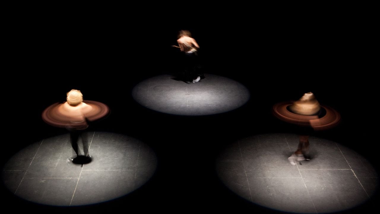 In Ghost Writer geven twee mannen en een vrouw een concert terwijl ze drie kwartier lang rondjes draaien op de plek waar ze staan. Het is een schouwspel waar je je ogen niet van los kan trekken. Het is knap maar de vraag hoe lang iemand dit volhoudt, geeft er ook iets dreigends aan.