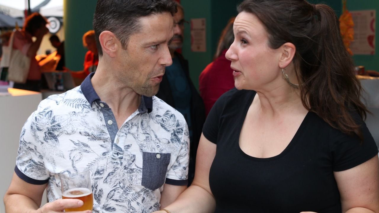 Vrijdagavond op De Parade. Alle tafeltjes zijn bezet maar we vinden een bankje in de schaduw van een van de tentjes. Met een bier en twee mineraalwater kijken we terug op de voorstelling.