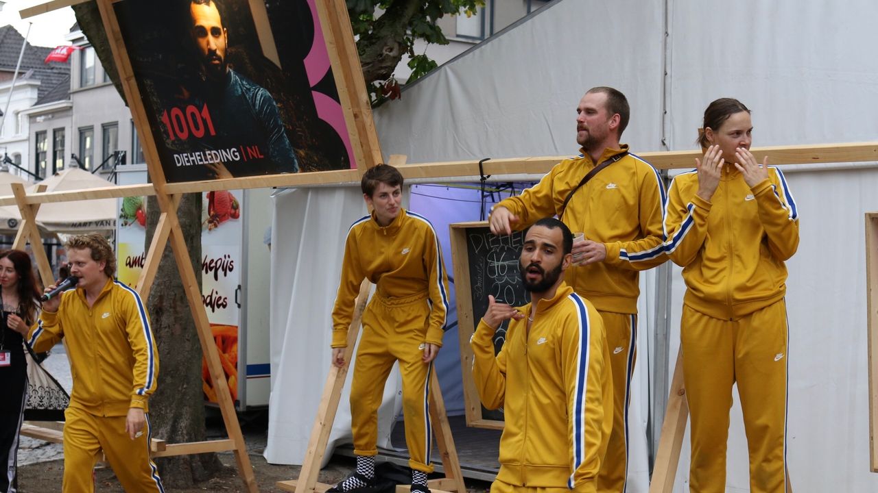 Het uitdelen van kleine rood-wit-blauwe vlaggetjes zorgt voor wat kritische blikken maar al snel zit iedereen er vrolijk mee te wapperen. En als een groep mensen moeite heeft met het Wilhelmus wordt snel overgeschakeld naar 'Vijftien Miljoen Mensen', het alternatieve Nederlandse volkslied.
