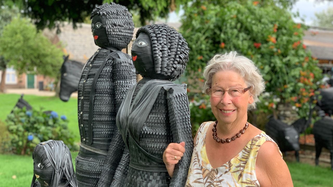 Lekke band? De tuin van Gerda (80) staat vol fietsbandenkunst!