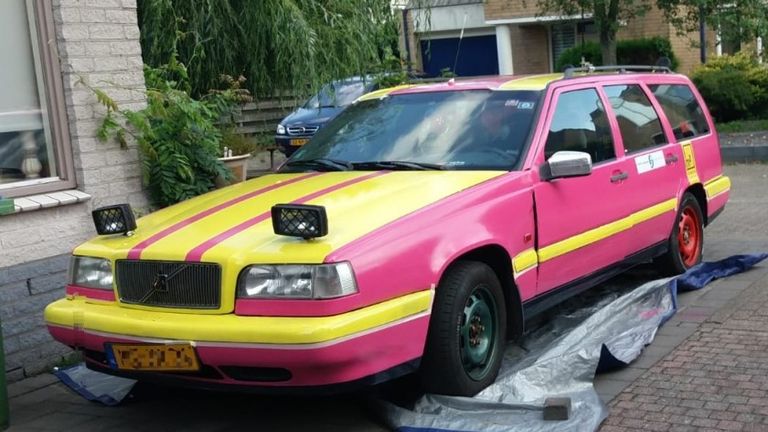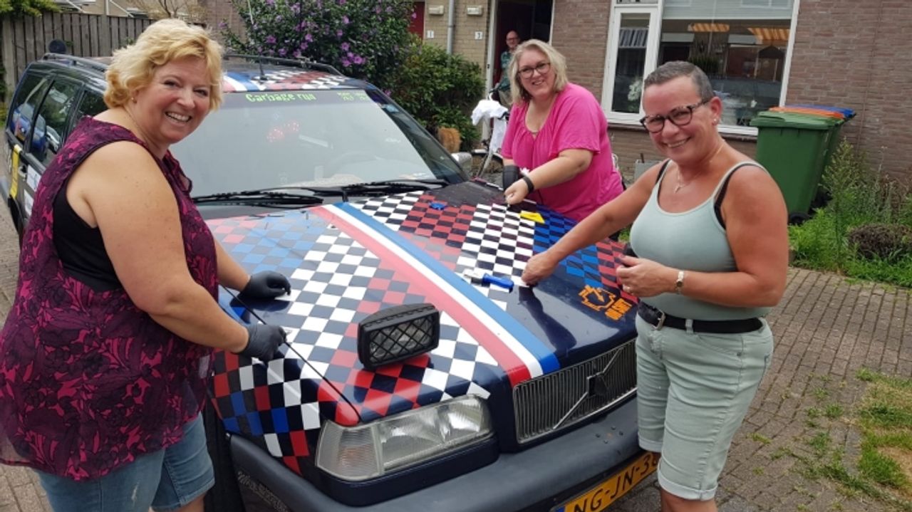 In totaal is het drietal al een fulltime week bezig om hun wagen 'lekker vrouwelijk en opvallend' te maken. Ze heeft al een geel-roze kleur en wimpers gekregen. Later worden er nog volop bloemen aangebracht.