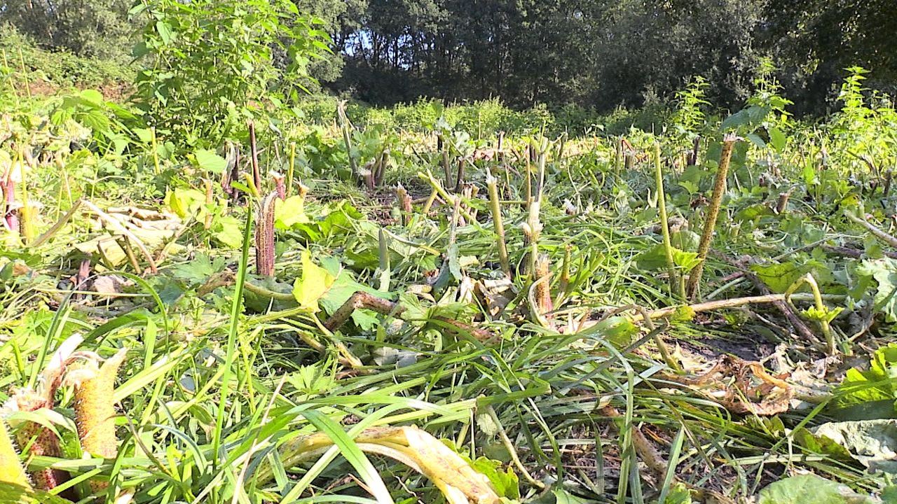 Daarnaast wordt er ook nog zo'n twee keer per jaar gemaaid. "Het is een gigantisch weerbarstig plantje", zegt Ralf. Het resultaat is een gebied vol met afgeknakte stengels.