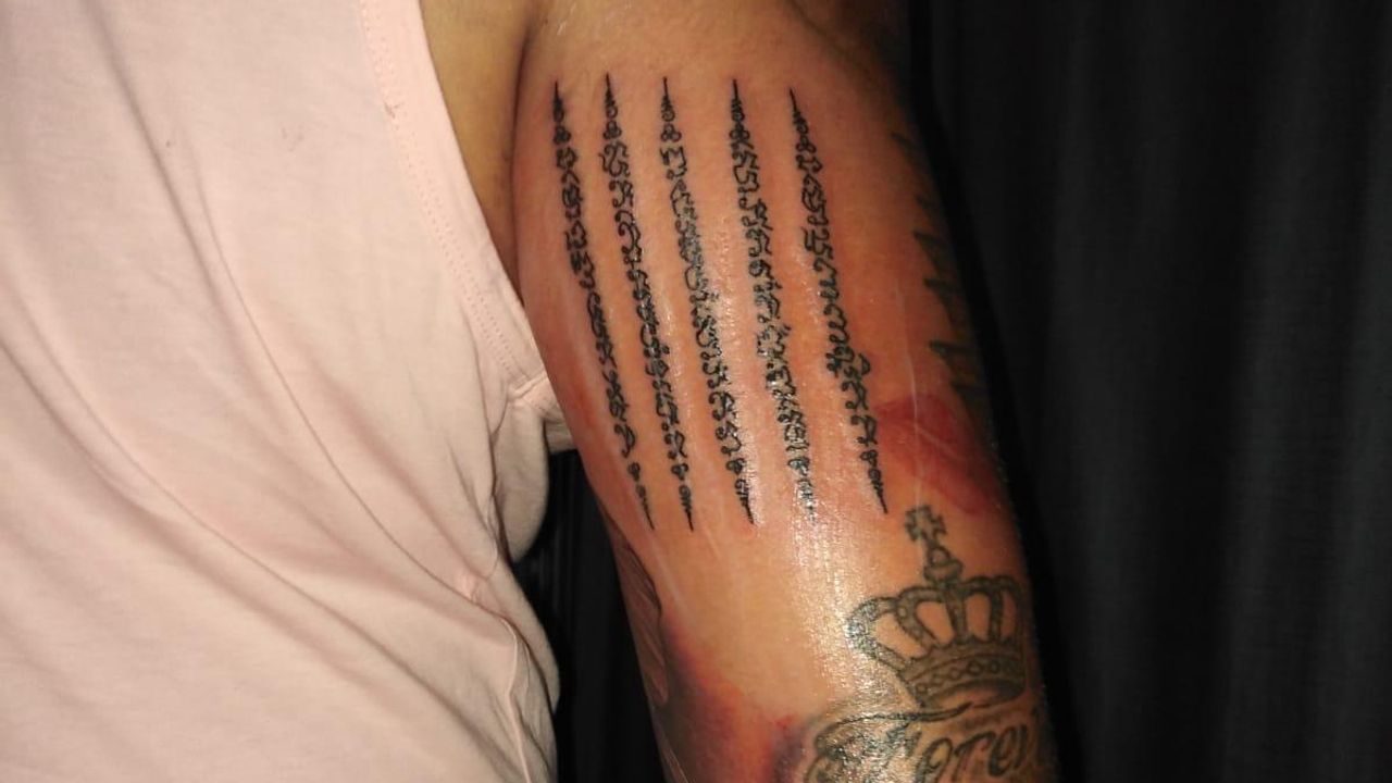 Do heeft ook een kompas op zijn arm laten zetten in de tijd dat zijn leven behoefte had aan richting. En zo is er ook een vuurvogel te ontdekken en een Thais symbool dat krijgers dragen voor bescherming.