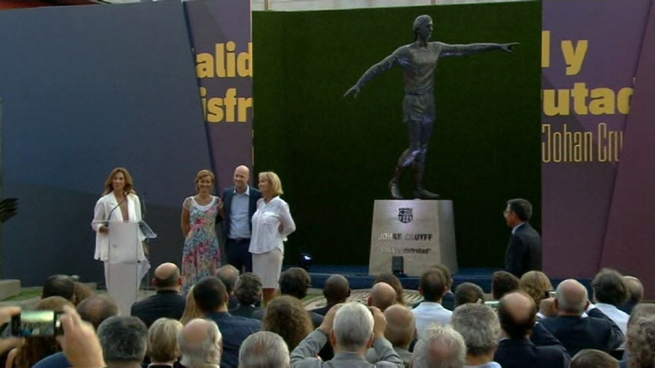 Het standbeeld van Johan Cruijff staat bij het nieuwe stadion waar het tweede elftal en het vrouwenelftal van FC Barcelona gaan voetballen. Boudewijn gaat uiteraard een keer naar de Catalaanse stad om zijn werk te bewonderen onder de Spaanse zon.