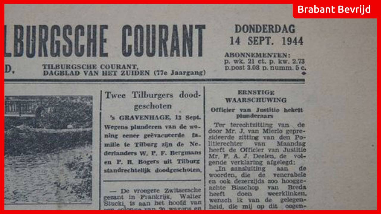 In kranten uit die tijd wordt ook duidelijk wat oorlog en bezetting betekent. De wetteloosheid is zichtbaar. Twee Tilburgers worden doodgeschoten in Den Haag. Het duo zou een woning van een geëvacueerde familie hebben geplunderd.