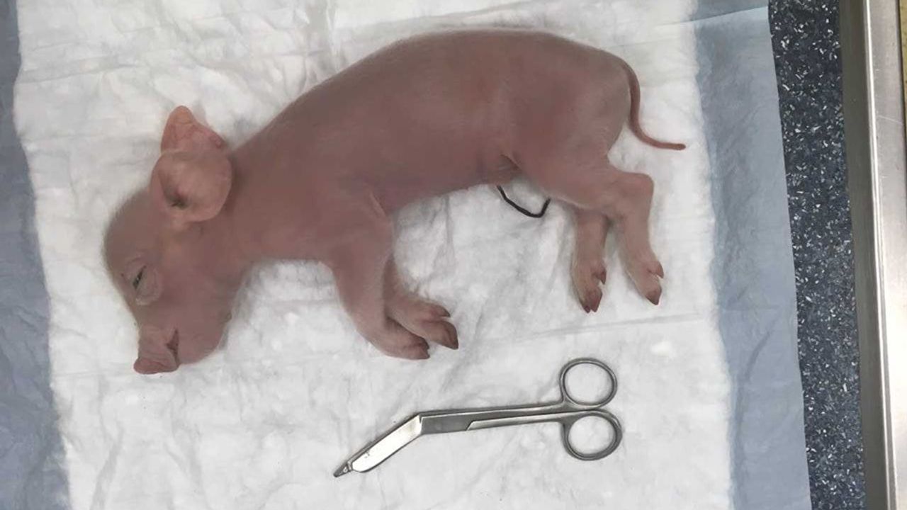Een dierenarts van dierenkliniek Hoogveld in Hintham, die bereid was kosteloos mee te werken, constateerde dat het biggetje pas kortgeleden was geboren. "De navelstreng zat er nog aan. Het beestje was nog geen week oud."