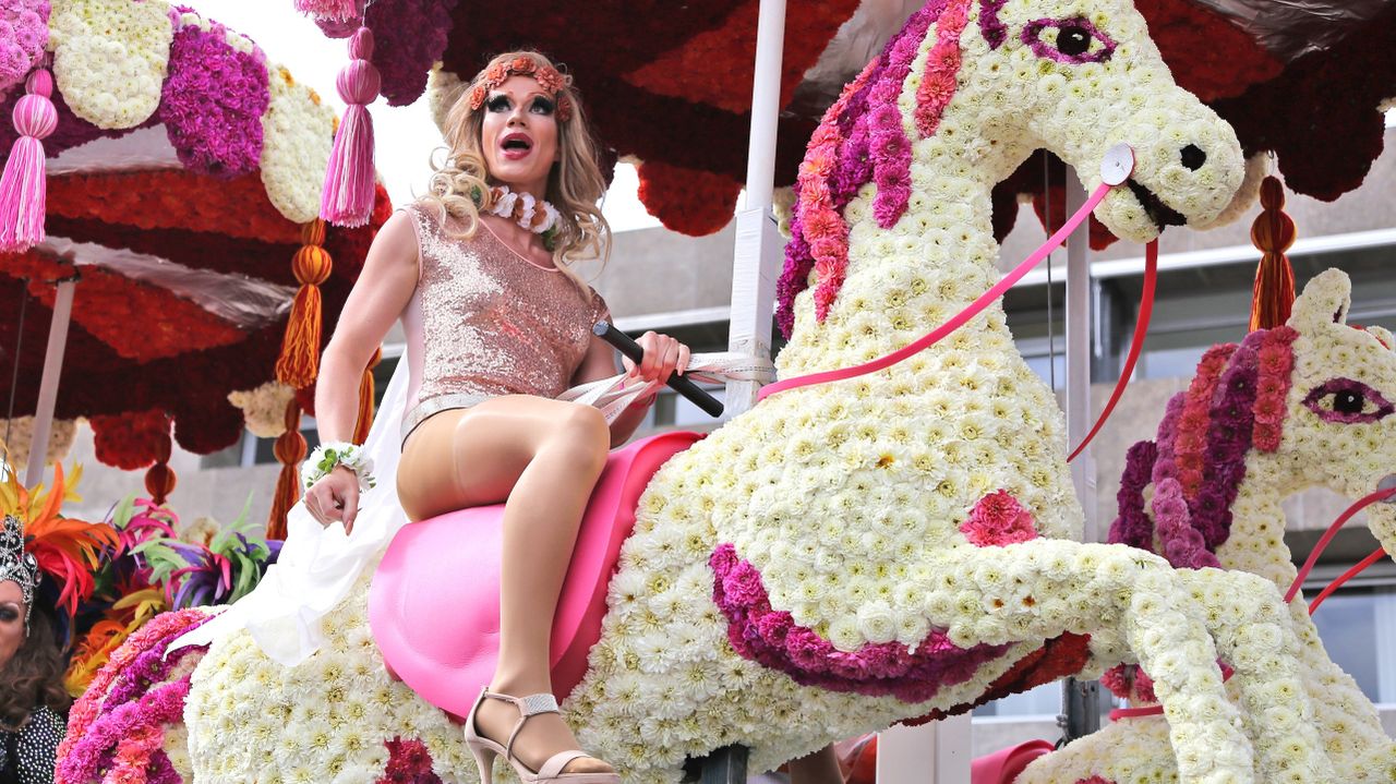 Dragqueens stelen show bij bloemencorso Valkenswaard: 'Kermis met een zachte G(ay)' [FOTO'S]