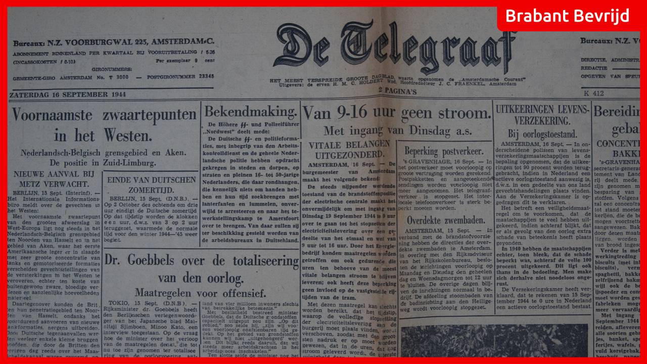 16 september 1944. De geallieerde troepen zijn er bijna klaar voor. Nog één dag van voorbereidingen en dan beginnen ze aan Operatie Market Garden, de militaire actie die de geallieerden snel door Nederland naar Duitsland moet brengen. Het is een giga-klus maar het is volgens de generaals dé manier op de Duitsers ver terug te dringen en uiteindelijk te verslaan. Dit speelt op weg naar de bevrijding van Brabant. Iedere dag lees je alle gebeurtenissen van die dag in 1944.