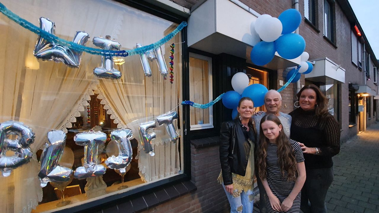 De blauwe en witte ballonnen voor het raam van zijn huis verraden meteen dat er iets te vieren valt in huize Van der Rijk. Aan het begin van de avond is het al goed druk in de tuin. De barbecue staat aan, de tafels in de tuin staan vol eten en een extra koelkast puilt uit met drinken.