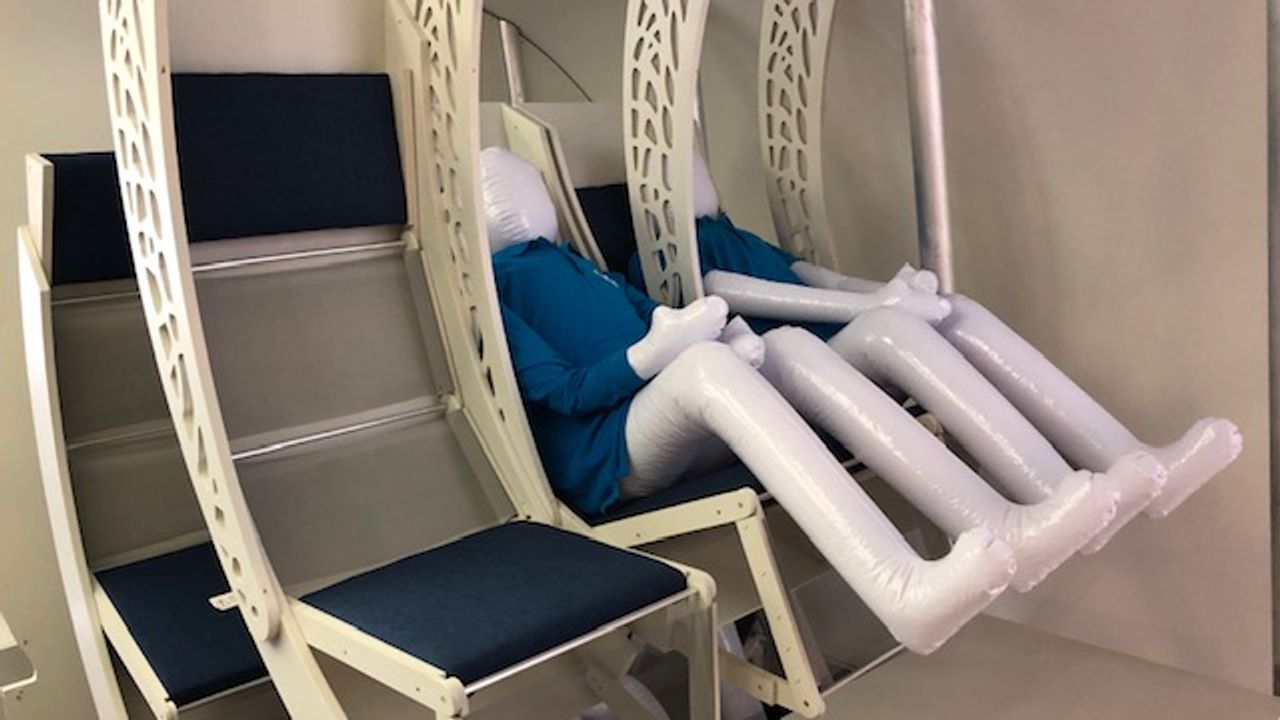 “Dit zijn loungeplekken”, zegt Thomas Rotte, onderzoeker bij de universiteit. Niet alleen de rugleuning gaat schuin naar achteren, maar ook het zitgedeelte. Het ziet er heel ontspannen uit. “Je kan helemaal onderuit zakken. Of rechtop zitten. En dat is weer goed voor je bloedsomloop. Dan kom je fitter aan op je bestemming.”
