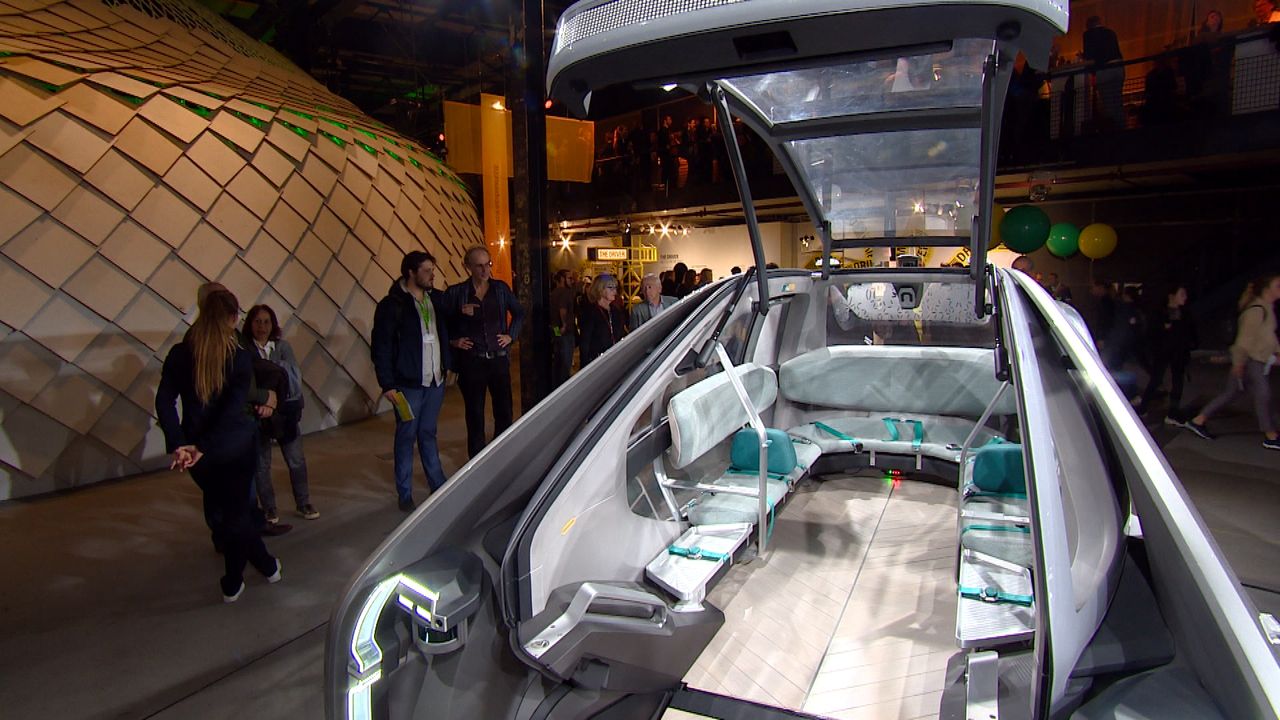 De auto van de toekomst, de auto van 2030 is te bewonderen bij de Dutch Design Week in Eindhoven. In drie varianten, van een hypermoderne limousine tot een pakketbus vol met kluisjes. Verslaggever Rogier van Son ging de bolides bekijken