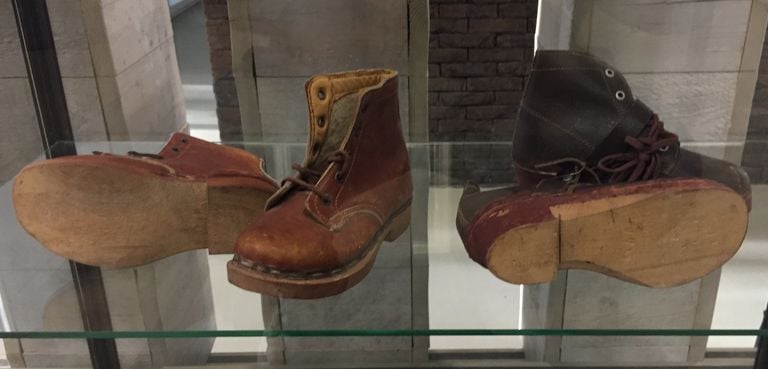 Door Hennie van Schooten uit Moergestel komen drie schoentjes met houten zolen op de tentoonstelling terecht. "De schoentjes", zo schrijft Paul Spapens, "werden gemaakt door de schoenfabrieken in Brabant omdat er geen leer meer was. Het waren zeg maar surrogaatzolen, net als er surrogaatkoffie, -thee en -tabak was.