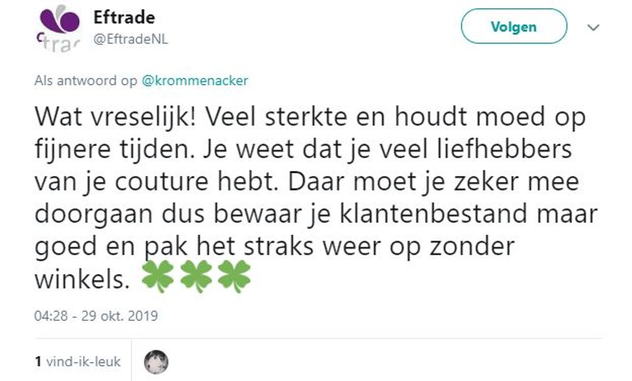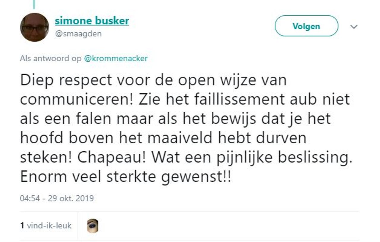 Marianne zegt: "Jammer dat veel mensen niet meer kiezen voor kwaliteit." "Wat een moeilijke beslissing zal dat geweest zijn, dag en nacht gewerkt voor je zaak en dan nou dit", schrijft Nicky.