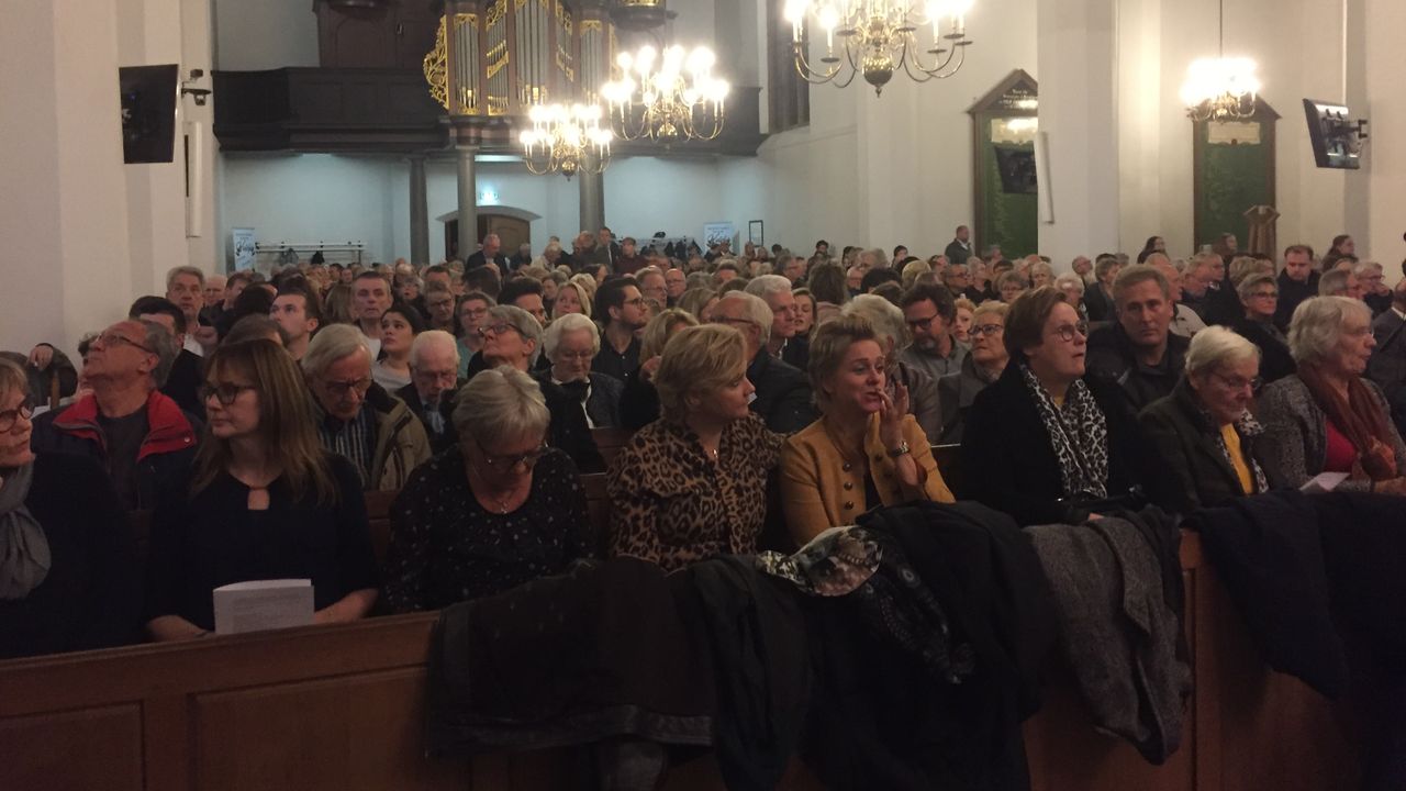 Om zeven uur maandagavond begon in de Grote of Catharijnekerk de herdenkingsdienst gevolgd door een stille tocht naar het monument bij het bezoekerscentrum in de Pelsestraat. De kerk zat afgeladen vol, er zijn zeker vijfhonderd mensen.