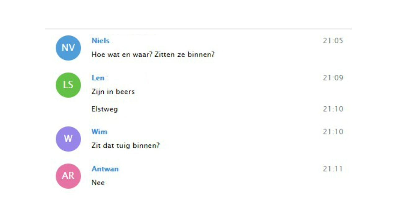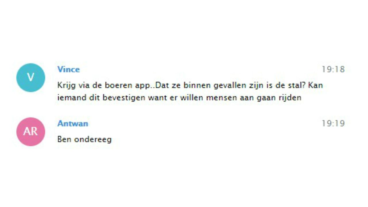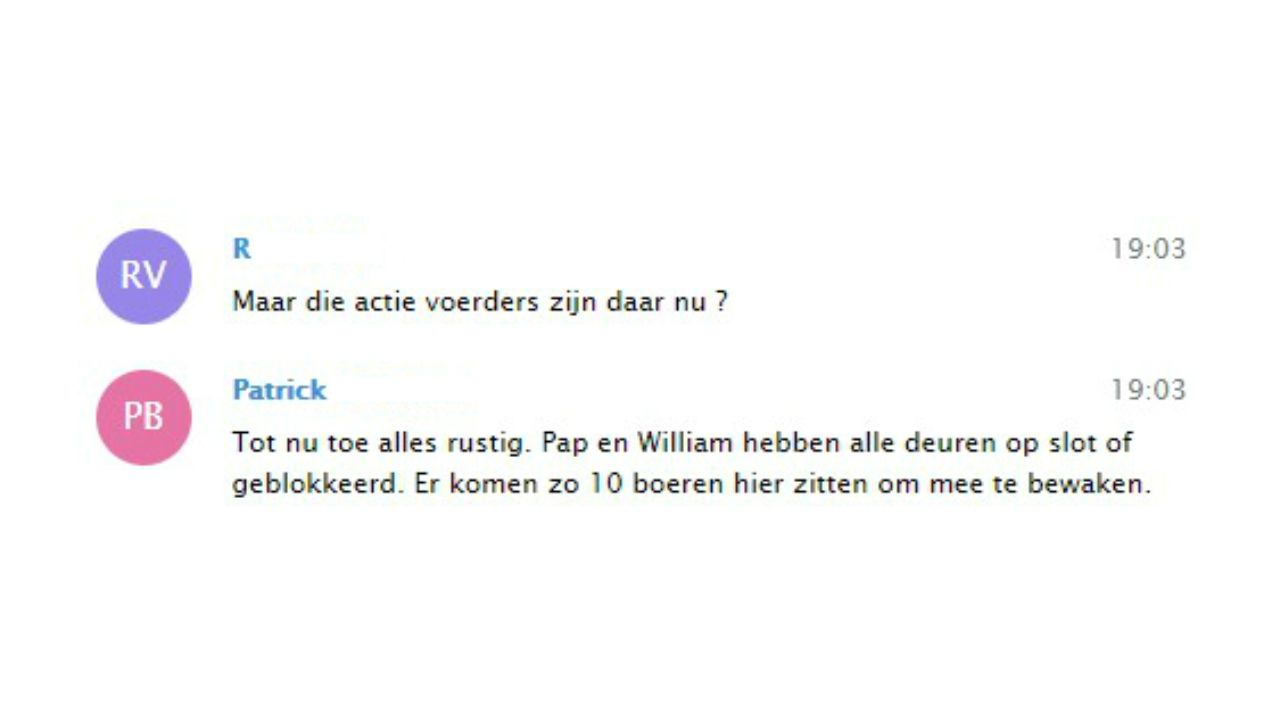 21.37: De conversatie stopt abrupt. Er wordt volgens de boeren meegelezen door activisten, dus openlijk praten gaat niet meer.