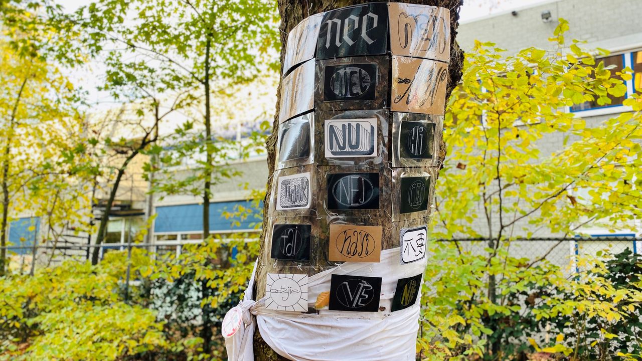 'Nee' tegen de kap in alle talen, gemaakt door beeldend kunstenaar Marian van Esch.