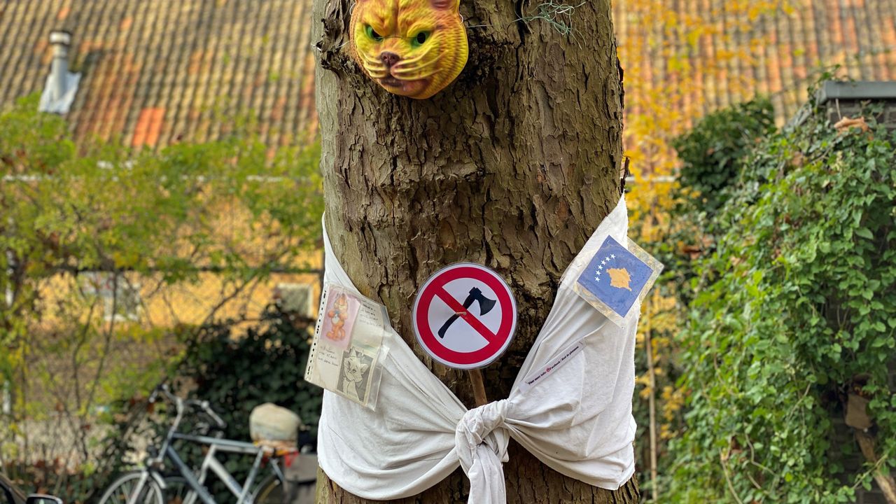 Actievoerders toveren platanen die gekapt moeten worden om tot kunstwerkjes [FOTO'S]