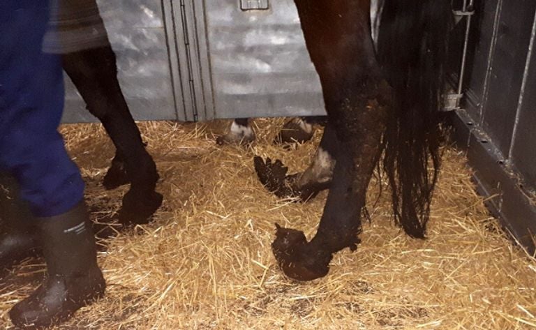 De toplaag van de anderhalf meter hoge laag mest was nog nat, waardoor de dieren nergens droog konden liggen. De paarden zakten soms tot de knieën weg in hun uitwerpselen. Een groot aantal paarden bleek ernstig lange hoeven te hebben, ook wel Turkse sloffen genoemd. Dat is volgens de Dierenbescherming een erg pijnlijke aandoening. "De beesten waren angstig, schuchter en mager. Bij Turkse sloffen groeien de hoeven omhoog. De paarden staan dan verkeerd en daardoor raakt het been vergroeid. Dat is erg pijnlijk voor de beesten", vertelt Dik Nagtegaal van de Dierenbescherming.