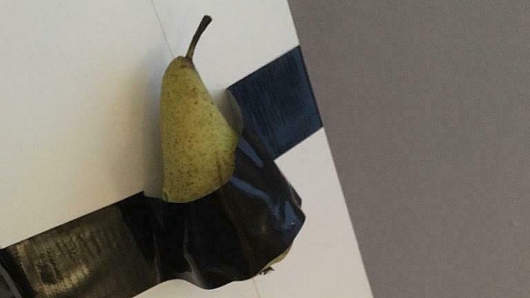 Koos Bos uit Dongen bleef in de categorie fruit. Hij plakte een peer tegen de muur en bood het stilleven te koop aan op Marktplaats. Hij vraagt er 375.000 euro voor en heeft er goede hoop op dat hij dat mooie bedrag binnenkort mag ontvangen voor zijn 'unieke kunstwerk van onschatbare waarde'.