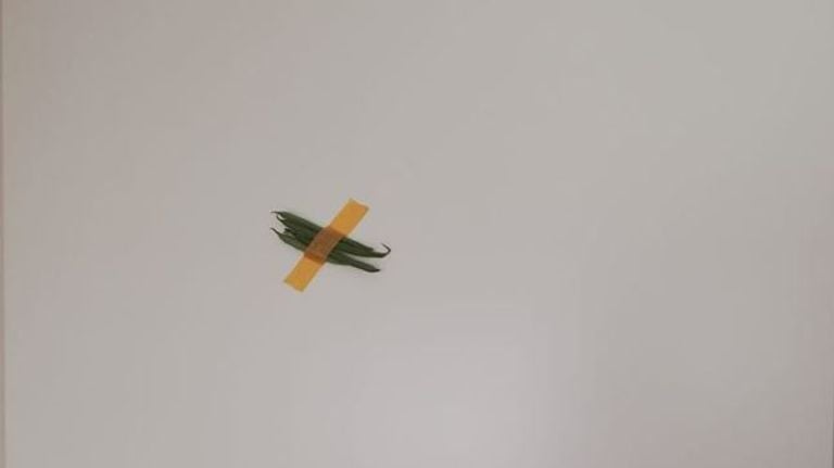 Bianca uit Gilze dacht verder dan fruit en plakte sperziebonen tegen de deur. Zo koos ze voor een andere hechtingsmateriaal dan ducttape, een bruine plakbandvariant.