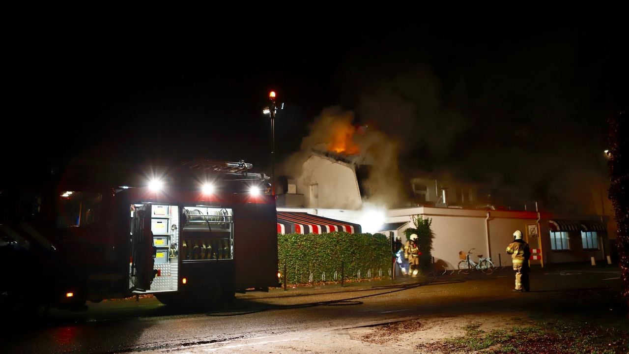 Het dak is op verschillende plekken opengezaagd om bij de brandhaard te komen. Volgens de politie is niemand gewond geraakt.
