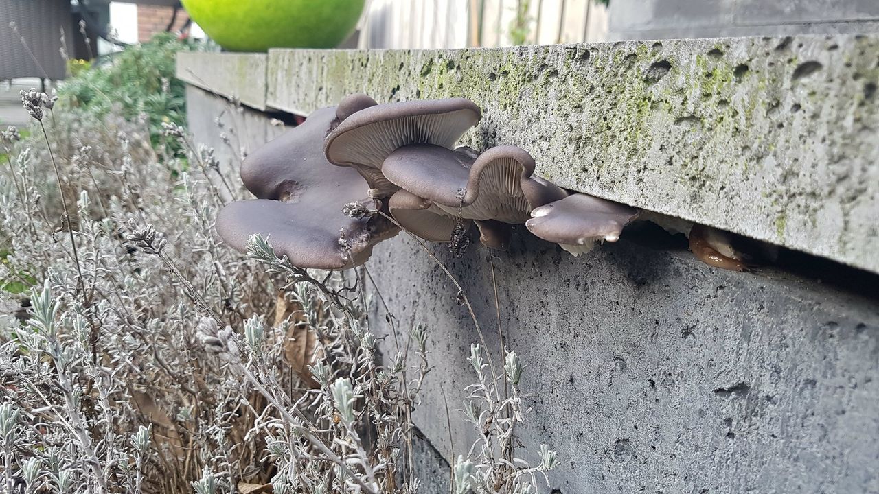 De paddenstoel of zwam die we op bovenstaande foto zien, is niet giftig. Op de foto zien we namelijk uit de muur - vermoedelijk op hout - een mooie blauwgrijze hoed met aan de onderkant prachtige brede witte lamellen. We hebben hier te maken met gewone oesterzwammen. In de natuur komen deze gewone oesterzwammen meestal voor in groepen, op levende of dode stammen of takken van loofbomen. Het meest zie je dan zitten op beukenbomen. Daarnaast tref je ze ook aan op populieren, berken en wilgen. Als je naar de hoed van deze zwam kijkt, lijkt die een beetje op de schelp van een oester, vandaar de naam. Gewone oesterzwammen zijn zeer goed eetbaar en sinds de jaren tachtig van de twintigste eeuw worden deze zwammen gekweekt op stro. Daarnaast wordt sinds een paar jaar ook koffiedik hiervoor gebruikt, in Tilburg zit bijvoorbeeld zo’n bedrijf. Mocht je dat zelf ook eens willen proberen, dan vind je hier een handleiding.