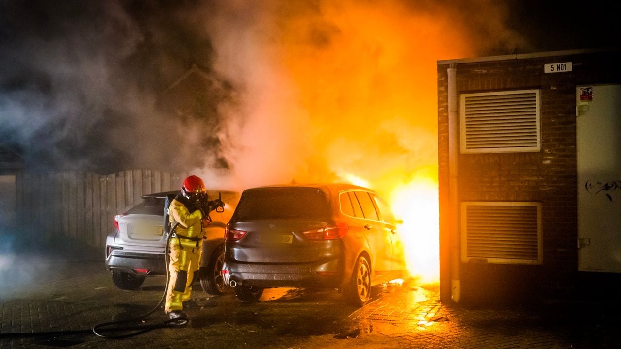 Iets voor tien uur zijn twee geparkeerde auto's en een schutting aan de Karnemelkweg in Eindhoven afgebrand na een vuurwerkexplosie. Een BMW vatte vlam, waarna ook een schutting en een auto ernaast in brand vlogen. Daarna was er nog een autobrand aan de Pygmalionlaan.