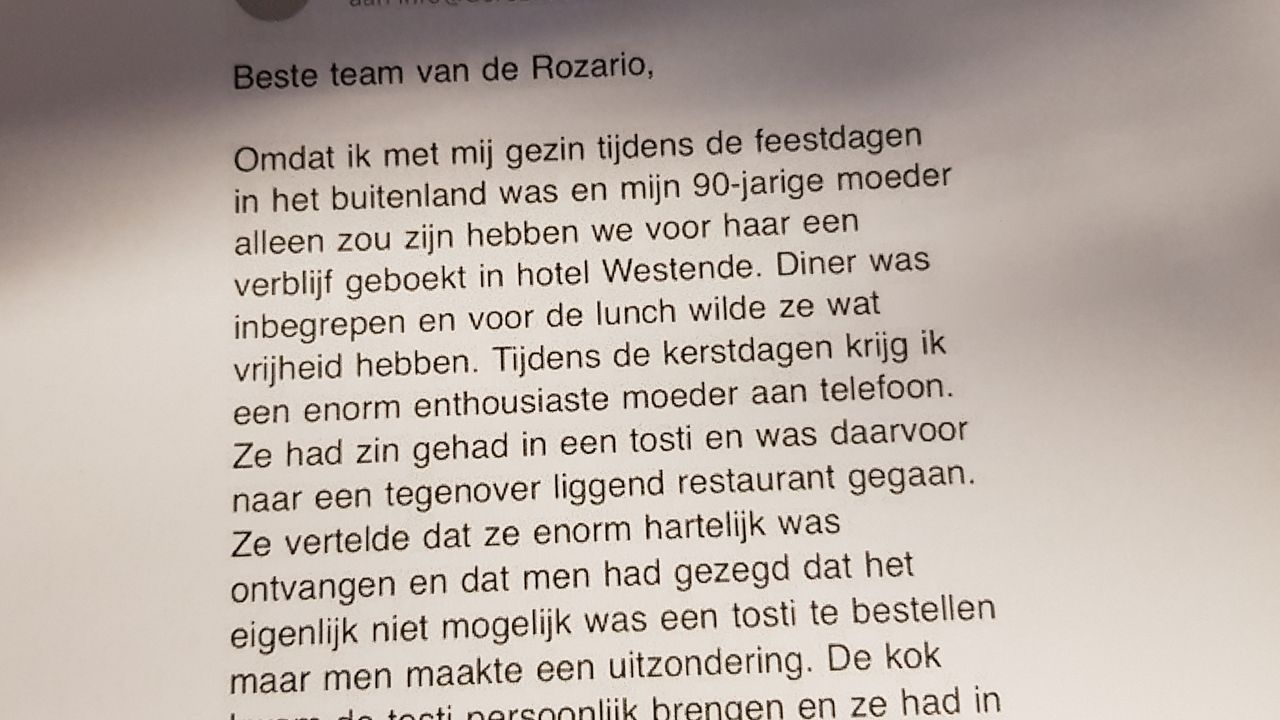 Toen de vrouw haar moeder na de kerst ging ophalen in Helmond, reden ze langs De Rozario in Helmond. Het restaurant dat in 2018 werd bekroond met een Michelinster. Haar moeder vertelde dat ze daar die lekkere tosti had gegeten. “Toen viel bij mij het kwartje waar ze gegeten had en moest ik stiekem enorm lachen”, schrijft de dochter.