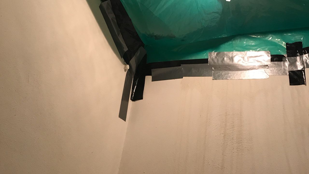 De situatie verergerde, waardoor de ontlasting letterlijk bij haar via het plafond langs de muren droop. Met plastic bakjes en zeil tegen het plafond probeerde Sandra zelf de boel op te vangen en schoon te houden. Dat is nu dus niet meer nodig, deze tijdelijke oplossing van de woningcorporatie zou een stuk beter moeten afdichten dan het provisorisch zeil.