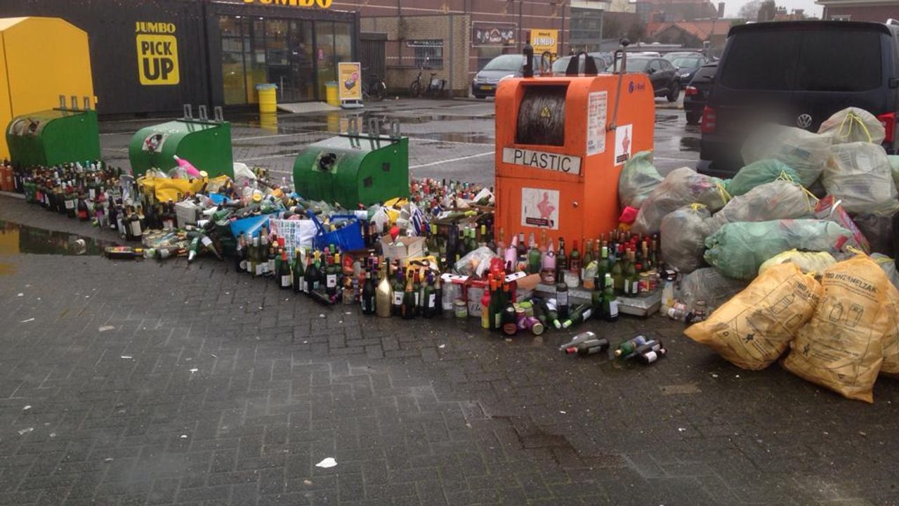 Bij het Jumbo-filiaal in Dongen is het van hetzelfde laken een pak. Behalve de glasbakken stroomt daar ook de afvalcontainer voor plastic over.