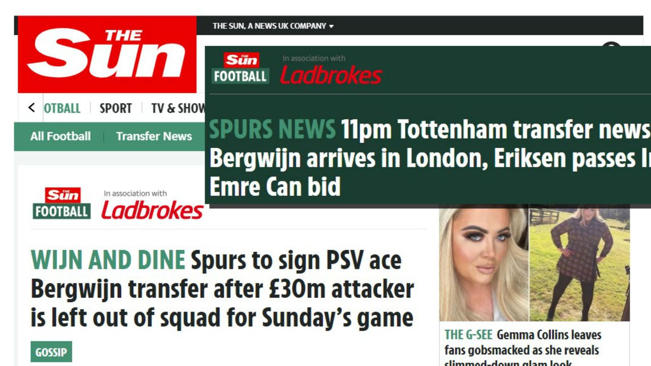Volgens de Engelse krant The Sun kwam Bergwijn maandagavond om 11 uur in Londen aan.