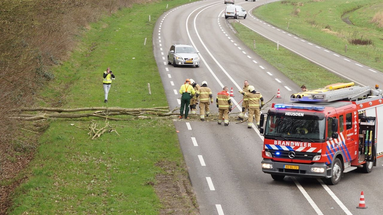12.39 Grote takken vallen op wegdek in Oudheusden door storm Foto: Anja van Beek