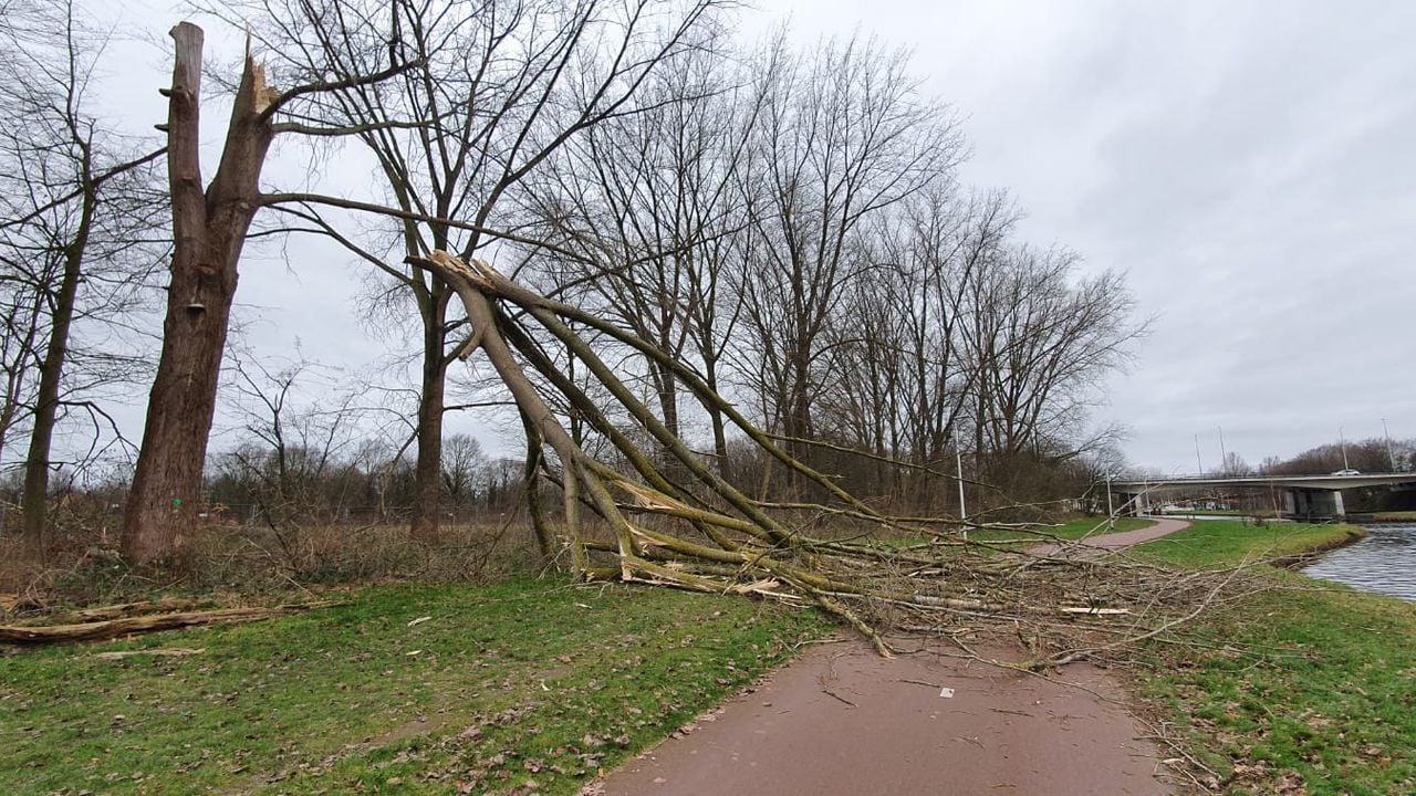 14.34 Boom kapot gewaaid op Goirkekanaaldijk in Tilburg. Foto: Jack Brekelmans