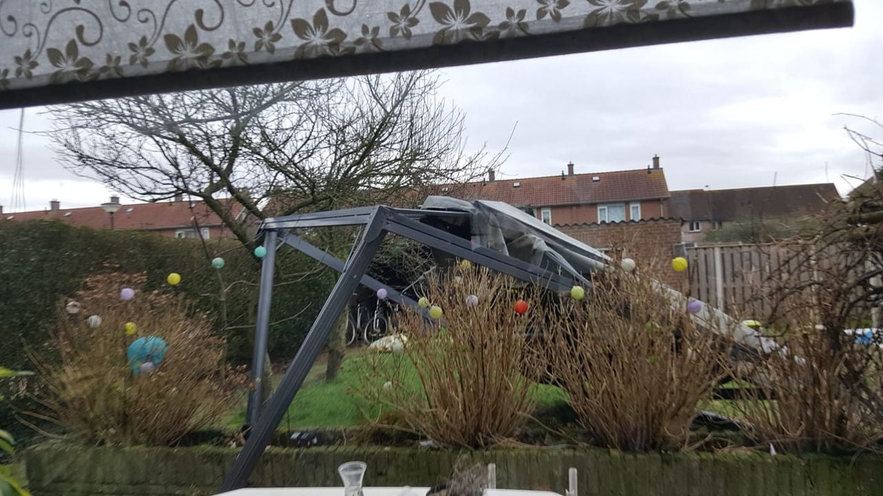 14.00 Storm haalt overkapping neer. Foto: Marianne Verhagen
