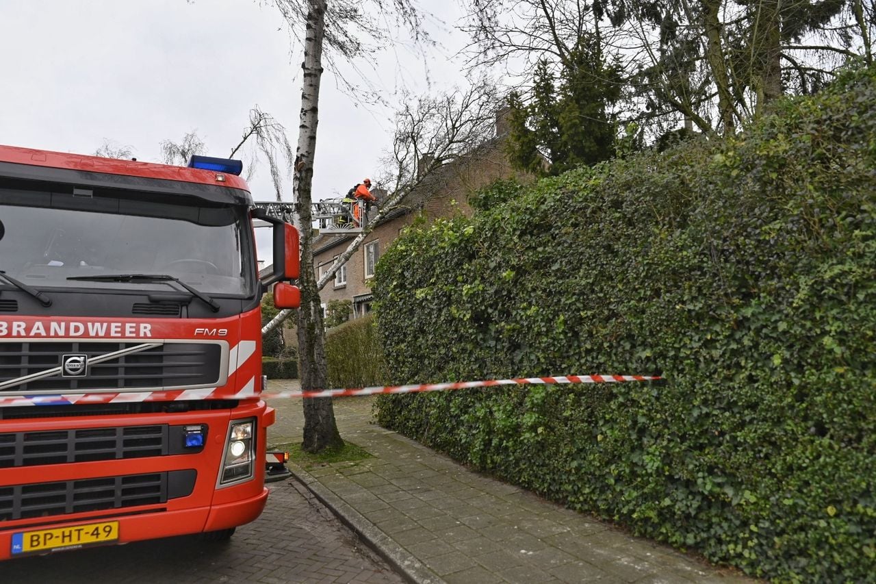 14.09 Brandweer kan door de storm de poes niet uit een boom in Bakel halen. Foto: Harrie Grijseels