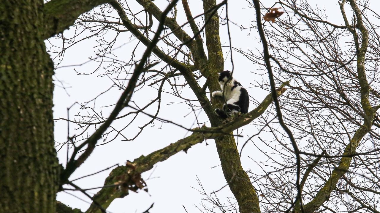 Gelukkig is de poes uiteindelijk zelf uit de boom geklauterd. De laatste vijf meter ging dat iets te rap (val). De kat lijkt geschrokken, maar gezond de boom verlaten te hebben.