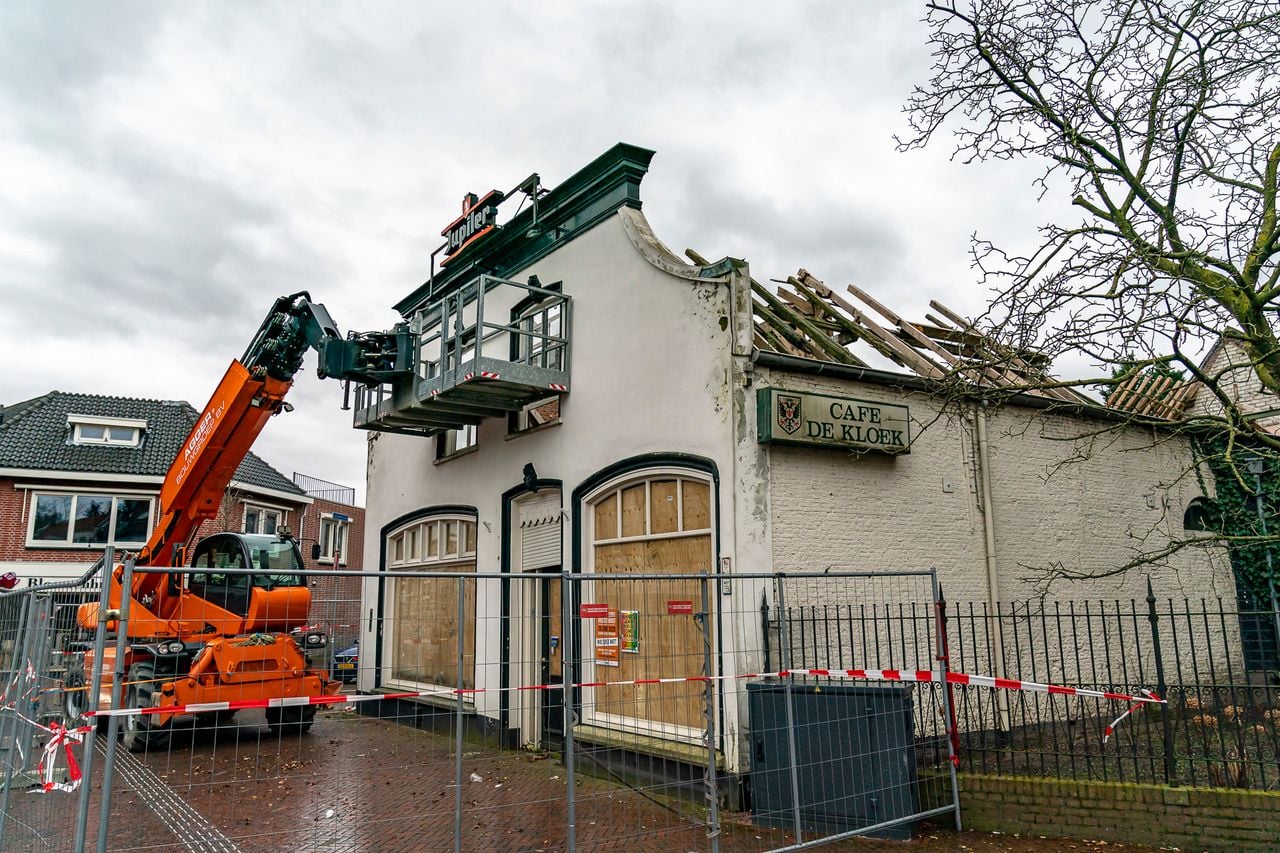 17.00 Storm teistert bouwval De Kloek in Oosterhout. Leijsenhoek deels afgezet. Foto Marcel van Dost