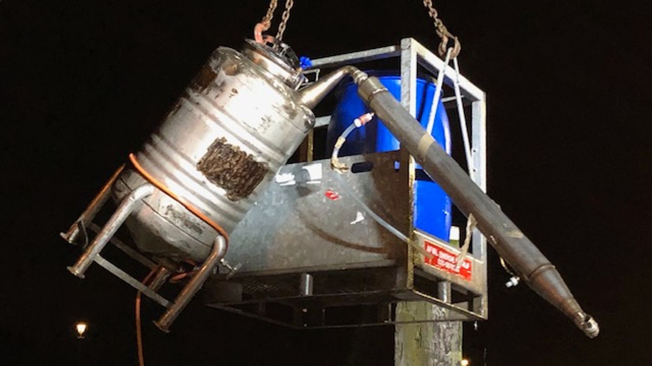 Politiewagens kwamen in volle vaart aanstormen, mannen renden weg maar konden op de dijk in de boeien worden geslagen. Toen deskundigen in het ruim afdaalden, vonden ze eigenlijk alles wat je in zo'n drugslab tegen komt: potten, pannen, zeven, mixers, branders, gasflessen.
