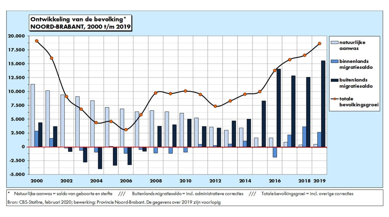 Brabant telt 2.563.500 inwoners in 2019. Niet alleen vanuit het buitenland weten ze Brabant te vinden, ook vanuit andere provincies zijn er meer mensen naar onze provincie verhuisd dan er vertrokken zijn.