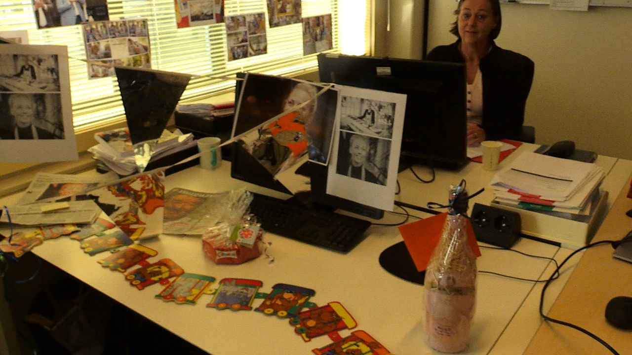 Collega's hebben al die tijd meegeleefd en de werkplek van Anouk is uitbundig versierd.