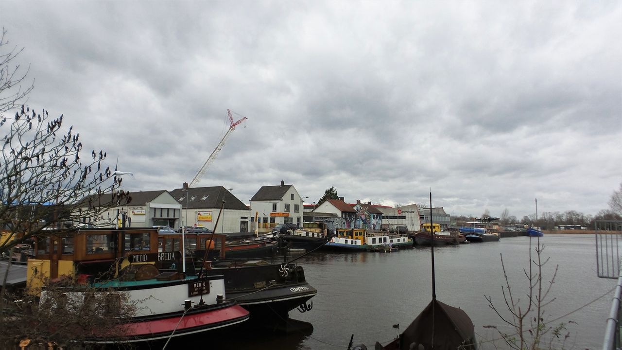 Het waaide zondagmiddag ook hard in Breda, maar de schepen in de haven hadden daar weinig last van.