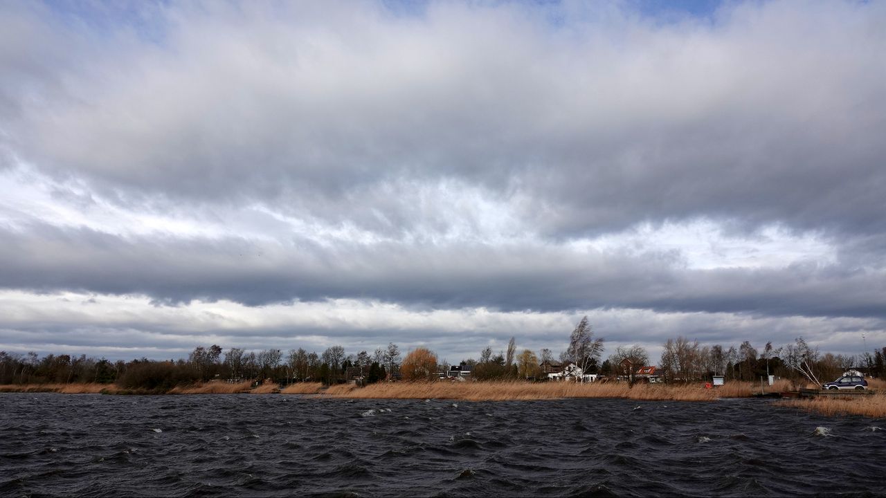 De wind zorgde voor schuimkoppen op het water bij Budel.