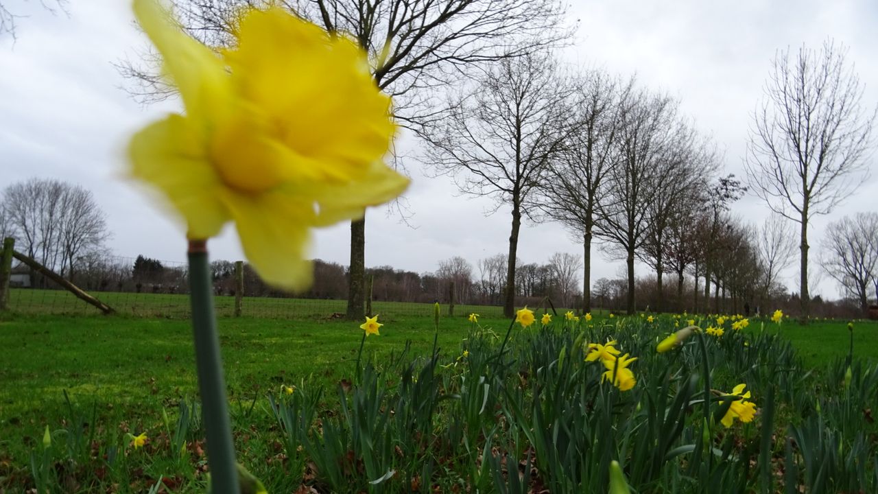 Door deze narcissen en het warme weer leek het zondag al lente in Stiphout. Alleen de harde wind deed anders vermoeden.