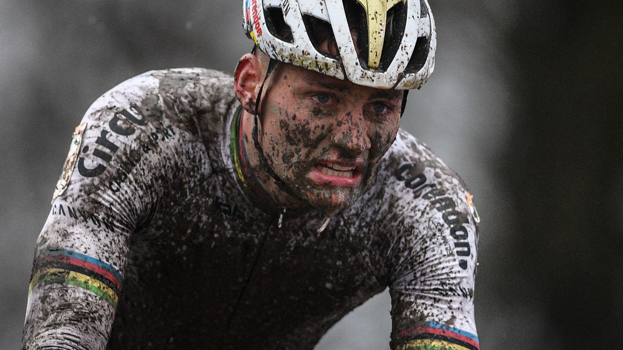 Tekst gaat verder onder de foto van Van der Poel in zware crossomstandigheden.